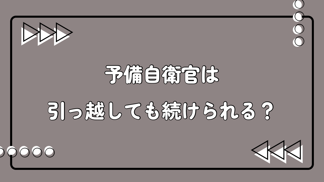 予備自衛官が引っ越しをしても、制度を継続することは十分に可能です。